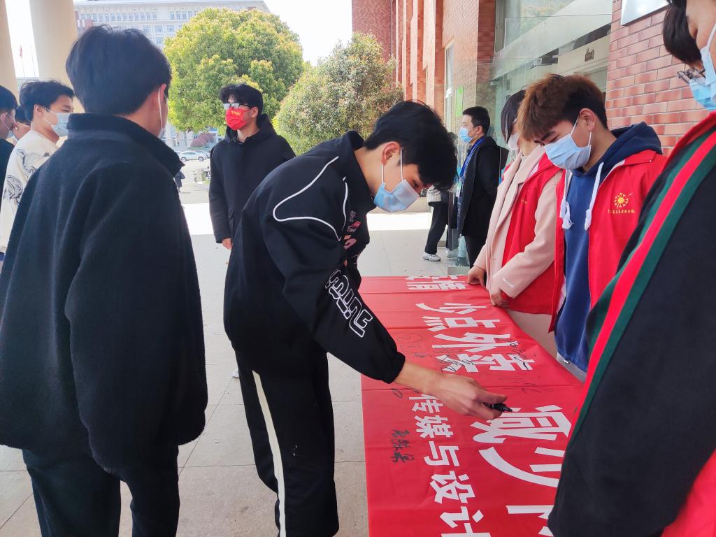 在疫情防控的特殊时期,减外卖、少网购是学校疫情防控工作的必要措施。为阻断疫情传播链条,确保Beat365师生的身体健康和生命安全,筑牢疫情防控坚固防线,传媒与设计学院团总支于3月31日组织开展“减外卖少网购,共携手防输入”主题倡议签名活动。