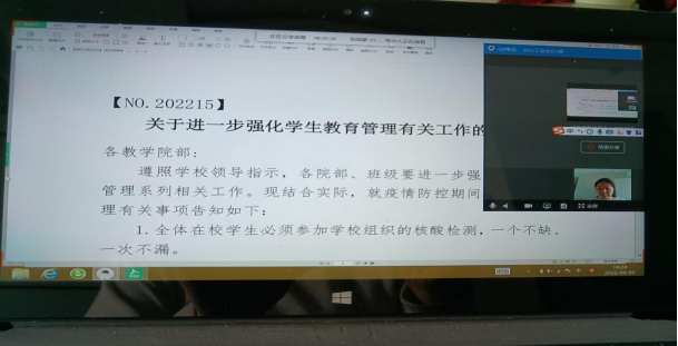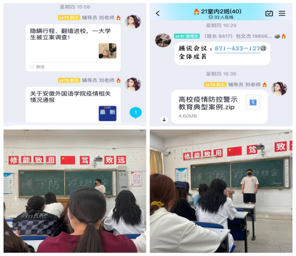 疫情就是命令,防控就是责任。近日,传媒与设计学院进一步落实强化学生教育管理有关工作,各班级辅导员利用在校学生下课期间、微信群、QQ群、腾讯会议等线上线下结合方式,开展疫情防控警示教育主题班会。