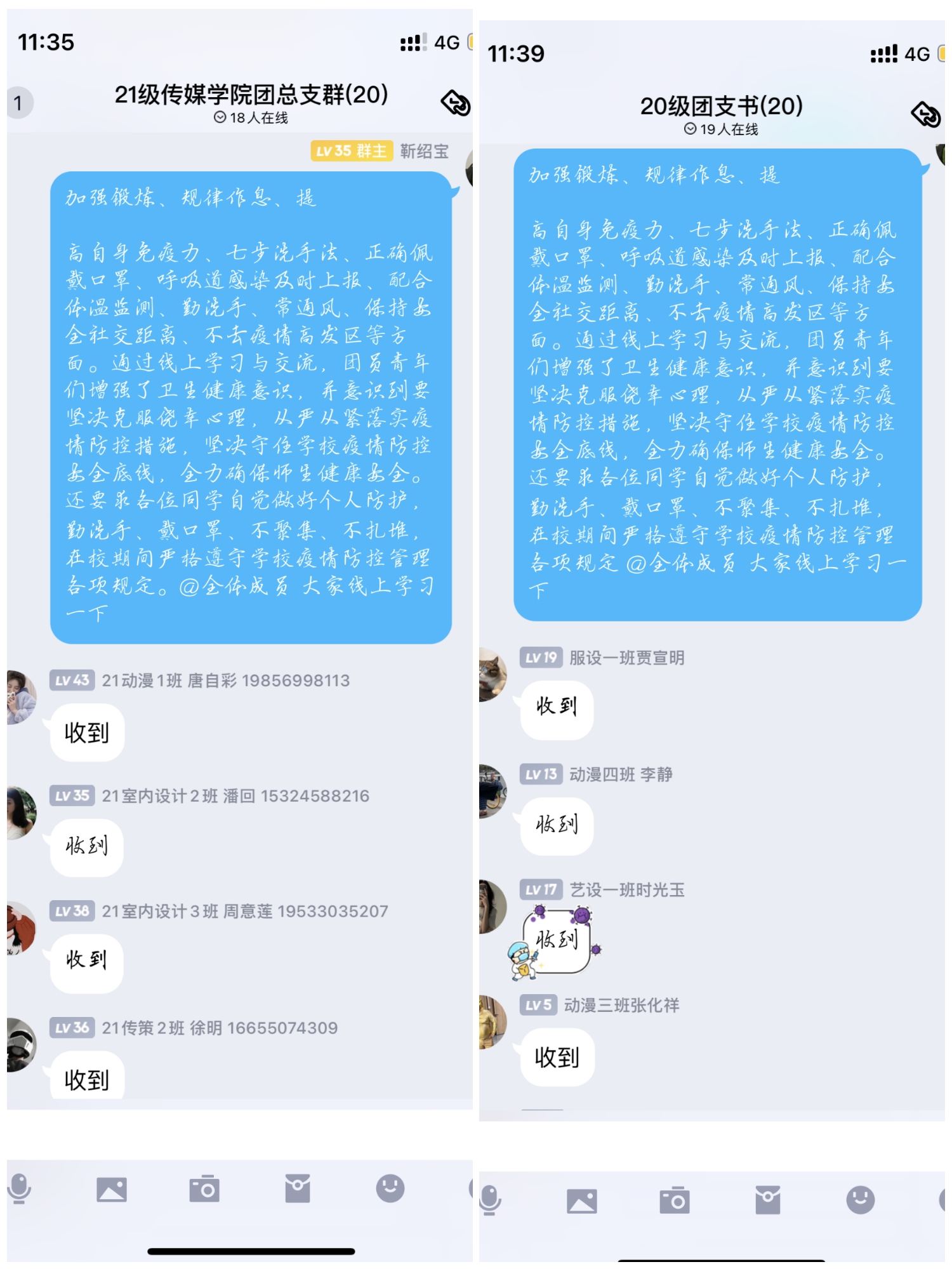 为提高学生们的疫情防控能力,更好地掌握疫情防控方法和技巧,增强卫生健康意识,4月12日传媒与设计学院团总支组织各班级团支部开展“科学防控疫情,文明践行随行”疫情防控主题学习活动。