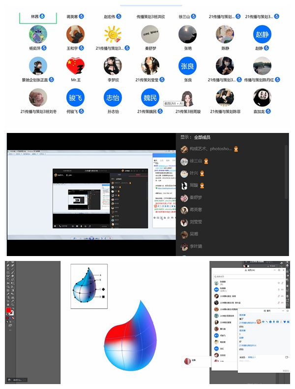 因疫情原因,4月16、17日两天,传媒与设计学院20室内艺术设计和21传播与策划两个班级进行线上教学。