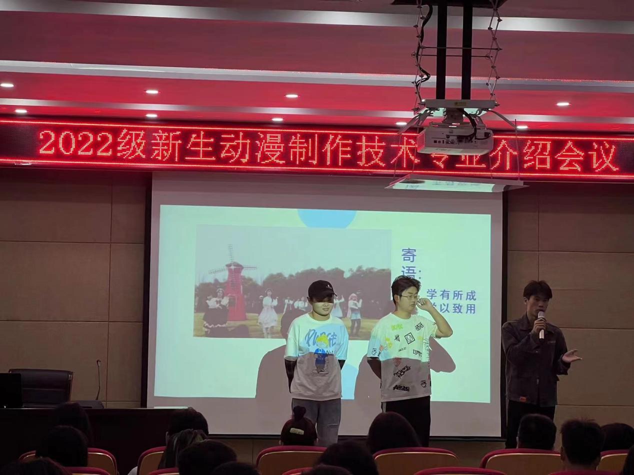 会议还邀请了优秀学生代表20动漫专业的吴德山、邓诗鑫和崔居振同学,三位同学为学弟学妹们讲述了自己的专业学习提升过程,他们对即将要毕业离校表示不舍,鼓励同学们珍惜在校的时光,不要错过任何一个可以提升自己各项能力的机会,在未来三年能够有所收获。