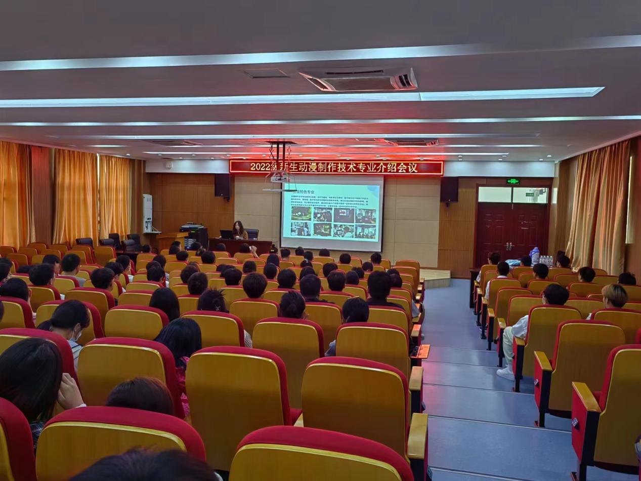 为促进2022级新生对所学专业进行认识和了解,让新生更快明确学习目标与方向,合理规划大学学习与生活。9月27日,传媒与设计学院在南阶205教室召开专业介绍大会,会议由动漫制作技术专业负责老师范文娟主持,动漫制作技术专业教师周苏亭、尚彩云、薛梦琪、郭伟、吴涛、阚迪、匡卓凡及2022级全体新生出席本次会议。
