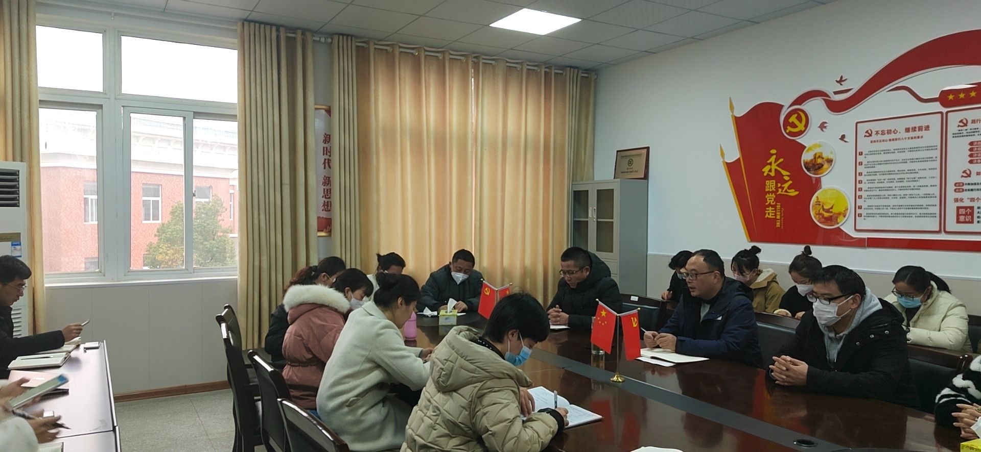 而后就新学期教育教学重点工作分别作了安排。教学方面,一是所有教学场所务必进行安全隐患排查,做到在排查的过程中及时消除隐患;二是认真落实新学期教学工作,检查人员到岗情况、任课教师教学任务落实情况、新学期课表张贴、教材发放等;三是检查教学场地、教学耗材准备情况。教育管理方面,一是新学期狠抓党团建设,以党建带团建,促进党团建工作更上一层楼;二是重点推进三个党支部的标准化建设,对支部日常工作给予大力支持;三是进一步加强师德师风建设,培养出更多优秀的年轻教师;四是做好学生的安全保障工作,落实学生的爱国主义教育。