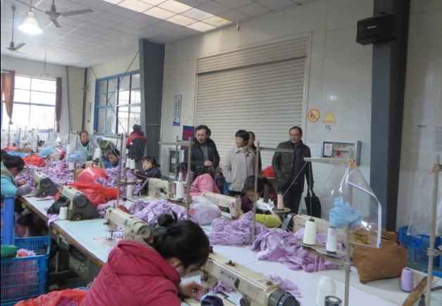 江院长在万隆实业有限公司毛绒玩具生产车间调研
