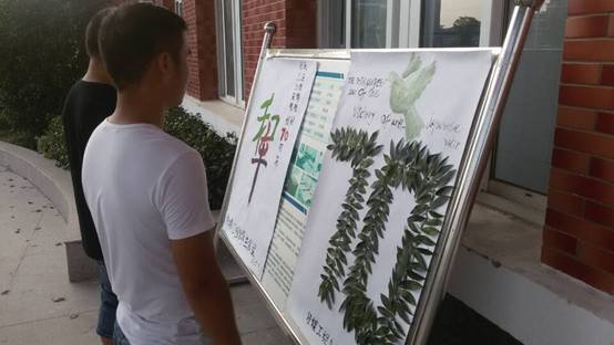 为纪念中国抗日暨反法西斯胜利七十周年,传媒工程系团总支于2015年9月3日在艺术楼开展海报宣传纪念活动。