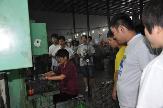 ( 图 一):同学们在参观奥丰汽配厂