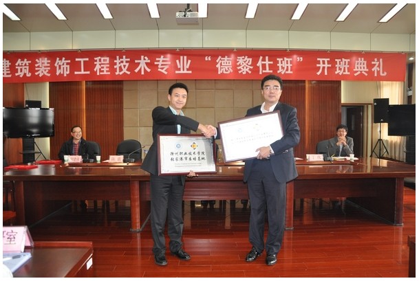 德黎仕总经理刘军浩对“德黎仕班”首批学生提出了“两个自信”和“三个结合”,即“自信”“自强”和“理论与实践相结合”“情商与智商相结合”“竞争与合作相结合”。他对建筑装饰工程技术专业的发展前景充满信心,希望同学们满怀专业情感、用心对待专业学习。