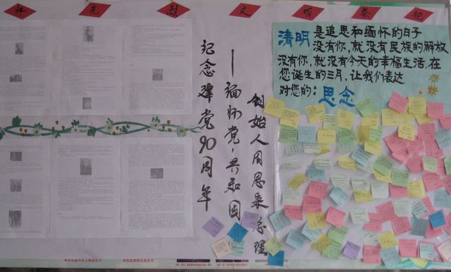 3月,是党和共和国创始人周恩来总理诞辰,为表达对总理等革命先烈的无限怀念、弘扬伟大的爱国主义精神,我系团总支出制缅怀总理专栏,设置“留言版”供广大同学寄托对总理及革命先烈的敬仰和思念。