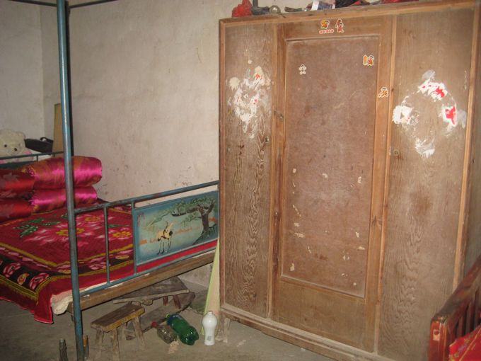走进院落,洪同学的父母赶紧迎了上来,看到我来访非常的高兴,除了问好却说不出别的客套话来,一看就知道是朴实的庄稼人。我仔细打量了房子,果然有些破旧,外墙上很多水泥都已斑驳脱落,而且长有厚重的苔藓,好像历史很久远的样子。进了屋,里面的状况也不好,除了水泥脱落外,每个屋角都有大块大块的水印,应该是雨天漏水留下的痕迹。两张大床、一组旧衣柜、一台电视,这就是他们所有的家当。据了解,原本他们住的是土房子,当时都快塌了,后来洪同学的叔叔看不下去花了六千元买来现在的平房送给他家。我很震惊,更为自己到现在才真正了解学生的家庭情况而内疚自责。