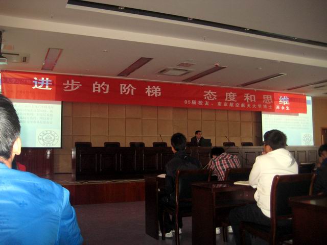 10月26日下午,一场名为“通往进步的阶梯:态度与思维”的讲座在综合楼五楼会议室精彩开讲,这是由我院05届校友、南京航空航天大学苏永生博士主讲。基础部各班学生代表在11级辅导员付老师的带领下来到会场聆听讲座,其中不少同学慕名而来。