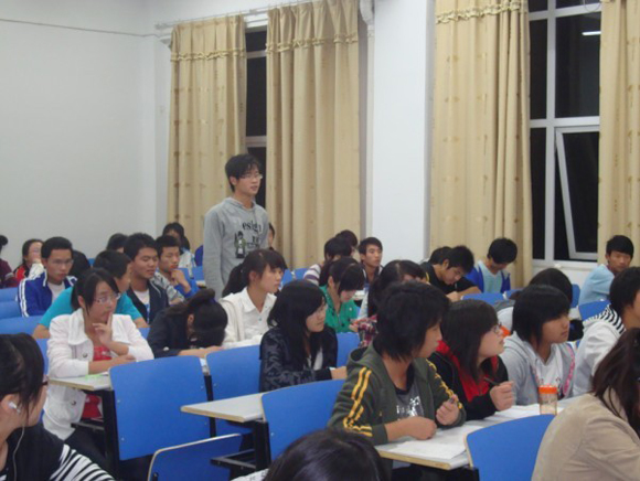 2010年10月20日晚七点半,08、09级优秀学生代表走进了大一各班级。大一新生积极踊跃的问了各个方面的问题,老生都一一详细的给予解答并传授自己的一些学习经验。经过近一个半小时的交流同学们对自己所学的和以后该做的有了进一步认识。