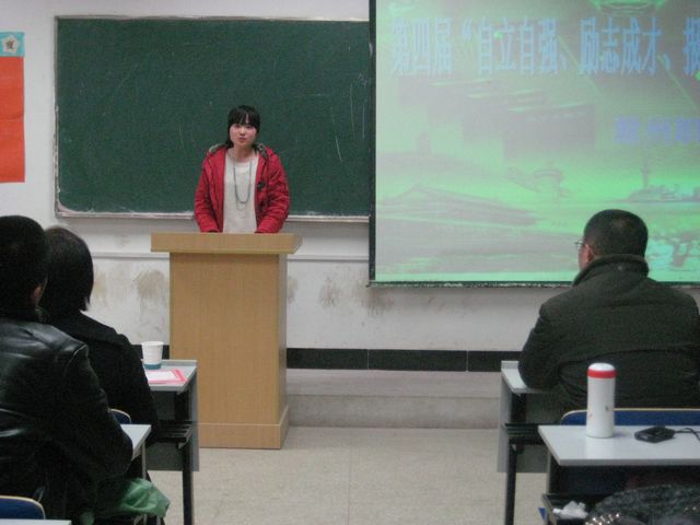 朱飞飞同学带来的《自立自强,放飞梦想》的演讲,以极具气势的和感染力的语言表达了作为大学生应具备的社会责任意识和报国之志。朱俊杰同学的演讲《为中华之崛起而奋斗》给听众带来了一次心灵的震撼。他结合自己作为一名贫困学子的亲身经历,用充沛的情感和抑扬顿挫的语调告诉大家应该刻苦勤奋自立自强,充分表达出了他作为一名贫困生代表的自尊自爱和自立自强。