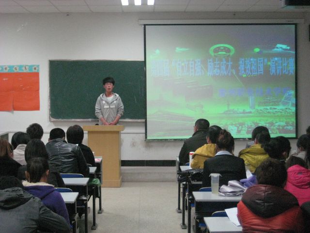 4月6日下午,新校区4119教室内,动情激昂的演讲声久久回荡。我院“自立自强,立志成才,报效祖国”演讲比赛在此火热进行,选手们的激情演讲引发现场观众热烈的掌声。