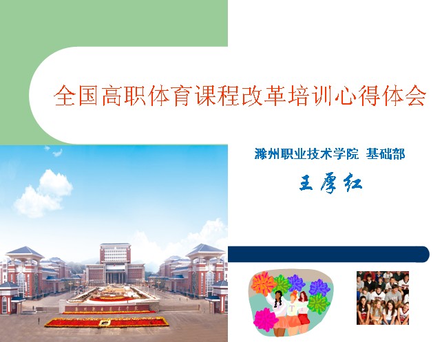 汇报会由基础部副主任梁建军主持。体育教研室王厚红老师就暑假期间赴上海参加的“全国高职体育课程改革”培训做了总结和汇报。汇报分为:培训简介、培训感触和我的思考三部分,王老师结合我院健美操课程教学为例,向大家展示了题为“高职体育教、学、演、赛课内外一体化教学模式构思”的个人思考。