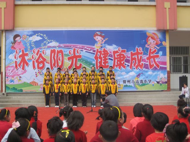 4月15日下午,滁州市清流小学内溢满喜庆的氛围,该校“沐浴阳光健康成长”爱国歌曲大合唱比赛在这里隆重举行,孩子们用欢快嘹亮的童声歌唱伟大祖国,展现了团结活泼、积极向上的精神风貌。