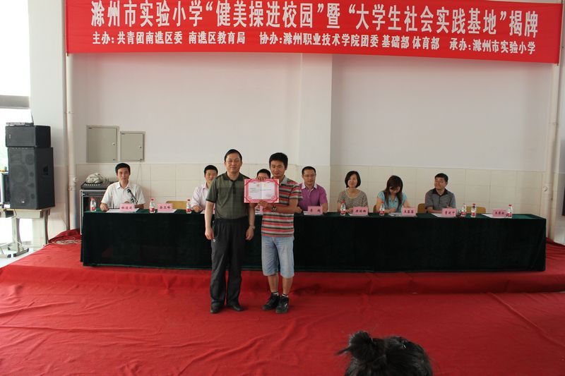 2012年5月10日下午,“Beat365唯一官方网站大学生社会实践基地”暨“健美操进校园”揭牌活动在滁州市实验小学艺术楼报告厅隆重举行。共青团南谯区委张伟书记、院团委王蓓蓓书记、基础部党总支书记李超同志、院健美操协会指导教师王厚红同志、以及南谯区教育局和实验小学的领导共同参加了揭牌仪式。