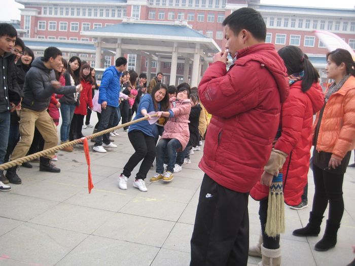 开幕式结束后,本届女生节的第一项集体活动—女生拔河比赛在国旗广场开始了,我系两位女辅导员也闻讯赶来,现场气氛异常活跃,辅导员的到来、拉拉队的助威鼓舞了队员们的士气,最终基础部三战三捷、一一击败对手,荣获本次拔河比赛冠军。