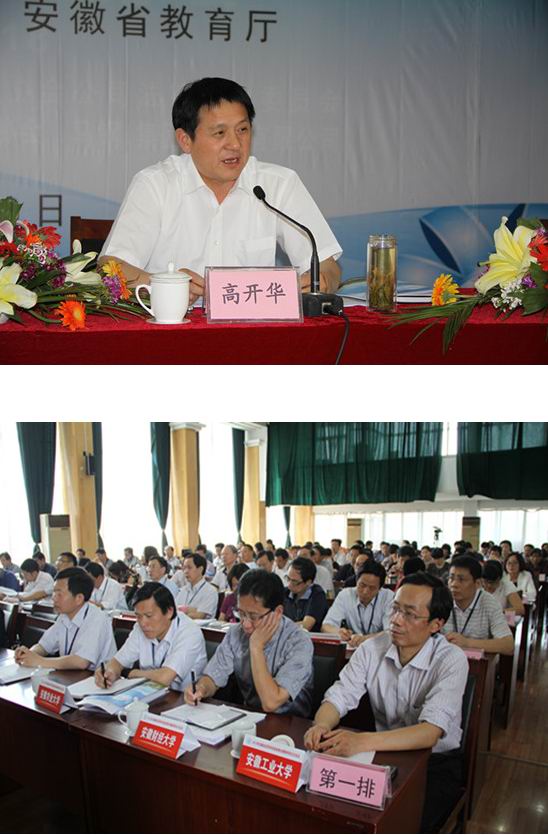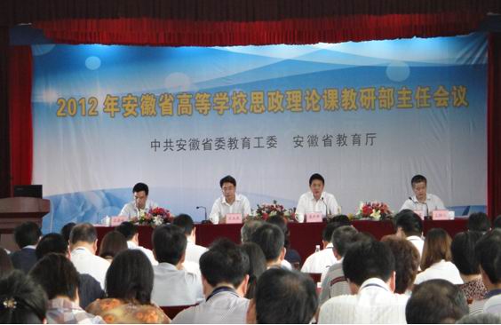 会议由教育厅思政处处长张庚家主持,省委教育工委副书记高开华出席会议并讲话。 合肥工业大学、安徽工业大学、安徽大学、淮北师范大学、安徽科技学院、合肥师范学院、淮南师范学院7所高校,分别就申报建设工程的做法与体会、提高思政理论课教学质量的制度化探索、研究生思政理论课的教学设计、思政理论课网络信息化建设、“移动课堂”教学方法、“参与式”教学方法、同城高校“手拉手”实践模式作了典型经验交流发言。省教育厅思政处布置了2012年建设工程申报和近期思政理论课有关具体工作。