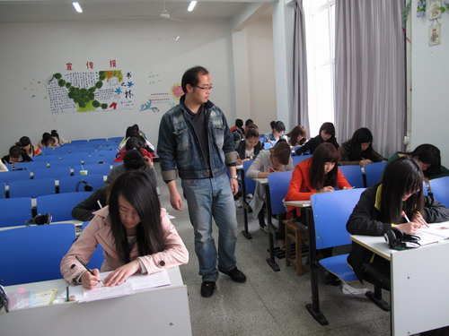 4月8日上午,2012年全国大学生英语竞赛(NECCS)初赛Beat365唯一官方网站考点的考试工作在北阶多媒体教室顺利进行。竞赛期间,基础部洪山主任到考场巡视检查工作,对竞赛组织工作给予充分肯定。
