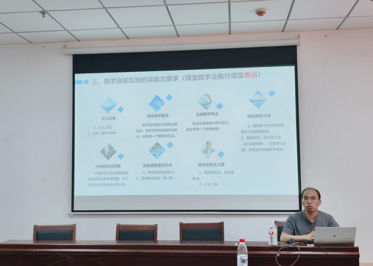 为进一步提升中青年教师教学能力,夯实教学基本功,推动课程思政与专业教学深度融合,6月18日,基础教学部在综合楼318成功举办“第三届中青年教师教学基本功大赛”赛前指导活动。本次活动以“以赛促教、以训赋能”为主题,特邀教学专家杨家稳围绕教学目标设计与课堂实施技巧展开专题培训,参加对象为45周岁以下的中青年教师。