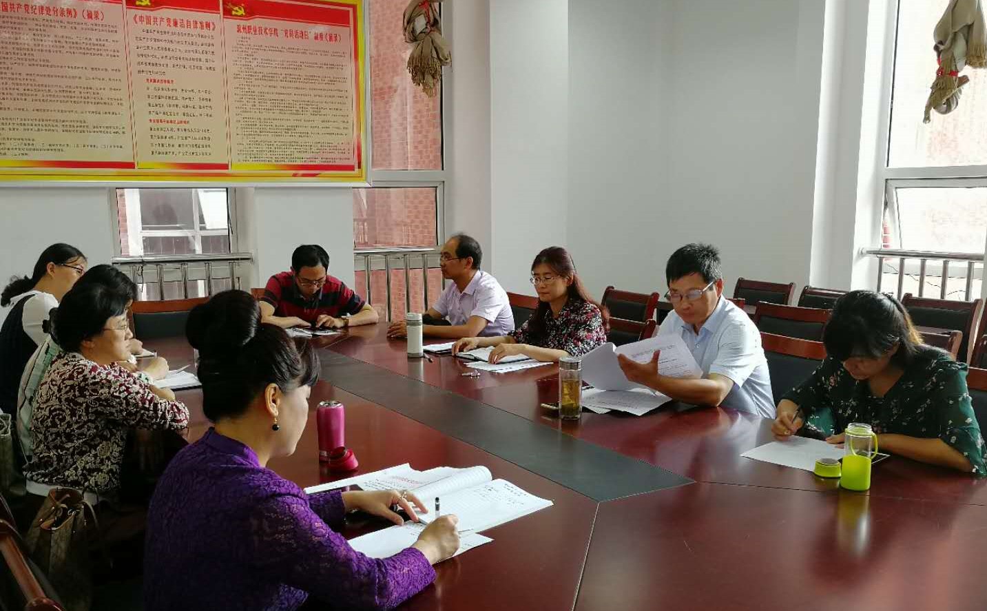 2018年9月29日,基础部党总支在综合楼二楼会议室召开中心组学习会议,会议由党总支书记林文静主持,全体党总支委员、支部委员、教研室主任参加。