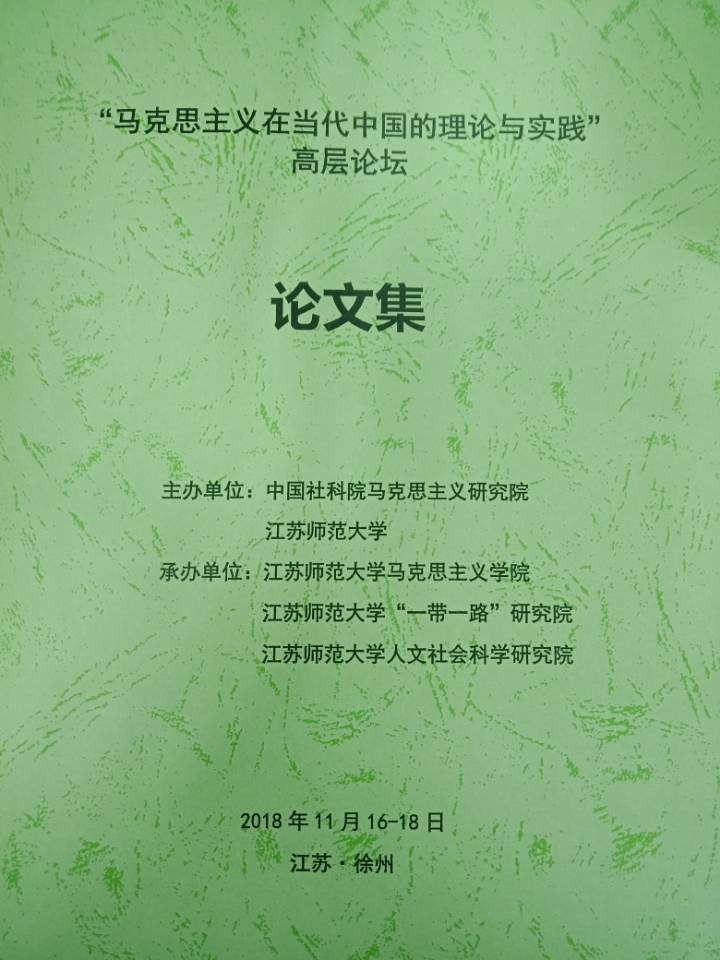 11月17日至18日,“马克思主义在当代中国的理论与实践”高层论坛在徐州召开,该论坛是由中国社会科学院马克思主义研究院和江苏师范大学共同主办,由中国社会科学院马克思主义研究院马克思主义发展研究部、江苏师范大学马克思主义学院、“一带一路”研究院、人文社会科学研究院承办。这次论坛是为纪念马克思诞辰200周年、中国改革开放40周年,贯彻落实十九大精神,推动马克思主义理论创新发展和马克思主义理论学科建设,切实增强“四个自信”而召开的。来自中国社科院、复旦大学、浙江大学、山西大学、南开大学、东南大学、南师大、中科大、山东大学、厦门大学等高校,《马克思主义研究》《人民日报》等媒体单位的100多位专家学者参加论坛。Beat365思政部副主任孔金副教授和吴成达老师应邀参会,是唯一一所高职院校的代表。