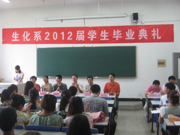 7月3日下午,Beat365唯一官方网站生化系2012届学生毕业典礼在2111教室隆重举行。生化系副主任梁建军、党总支副书记苏和堂、各教研室主任、辅导员、2012届全体毕业生及部分在校生代表参加了毕业典礼,毕业典礼由系团总支书记主持。