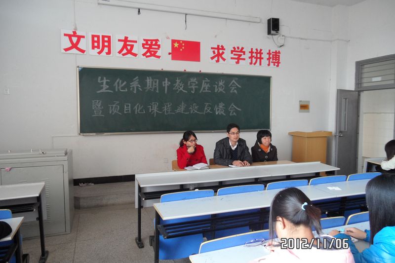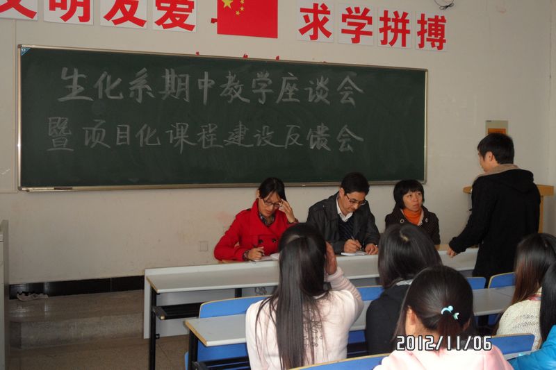 为进一步了解学生的需求、倾听学生的心声,提升管理工作质量,促进教与学的和谐统一,生化系于11月6日中午在2111教室召开了期中教学座谈会暨项目化课程建设反馈会。会议由系秘书孟飞老师主持,团总支张功会书记、辅导员姚玥明老师及各班级代表80余人参加了会议。