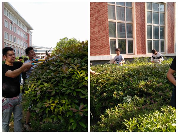 根据人才培养方案和高职创新行动计划项目建设的要求,专业核心课程实训需和企业生产相结合,更好地提高学生专业操作技能。5月19日,经与学院总务处沟通, 15级园林、15级园艺两专业学生在校内开展园林树木整修修剪生产性实训,实训地点是4号、5号教学楼旁边绿地,开展实训项目有球类植物造型修剪、绿篱规则式修剪、自然式修剪等。