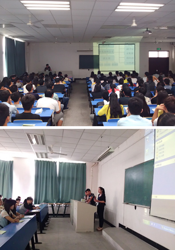 9月15日上午8点,北阶206教室内座无虚席,食品系14级全体新生在辅导员刘杰、杨海燕的组织下进行校规校纪专题学习,辅导员对我院基本情况、学籍学历管理办法、“6S”规范等重点做了解读。