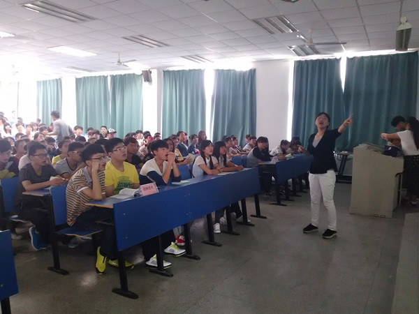 最后,在团总支及杨海燕老师的组织下,全系新生学唱校歌,同学们热情很高,很快就能跟上节奏。现场工作人员还即兴组织了男女生比赛、班级比赛,校歌学唱从另一个层面激发了新生的爱校之情。