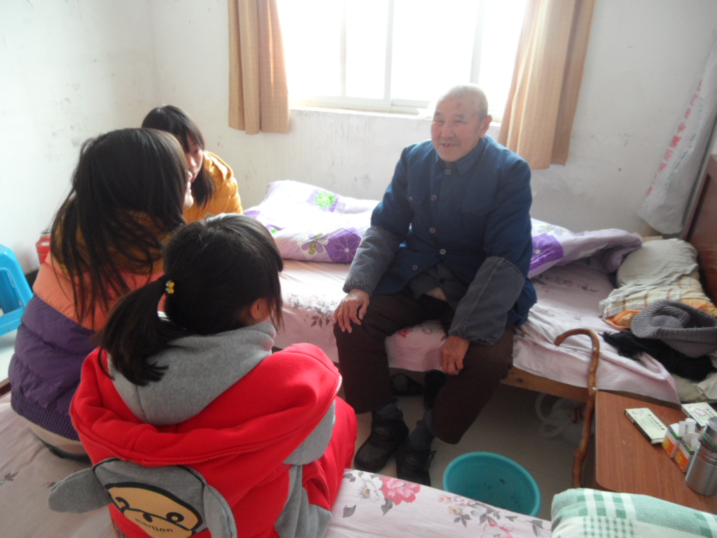到达目的地后,志愿者们就各自行动起来。有的去陪老人们聊天、打牌、下棋,有的去为老人打扫房间、整理床铺。4点多,大家按照事先约定的时候一起到厨房开始和面、包饺子。