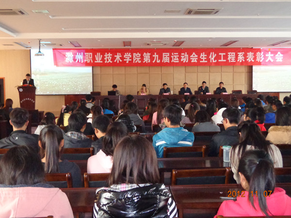 11月7日下午,生化工程系在综合楼五楼报告厅召开了运动会表彰大会,表彰在运动会中表现突出的生化系运动员、表演人员及班级。大会由孟飞老师主持,生化工程系党总支副书记苏和堂、副主任梁建军参加会议。
