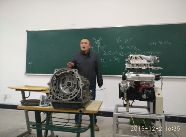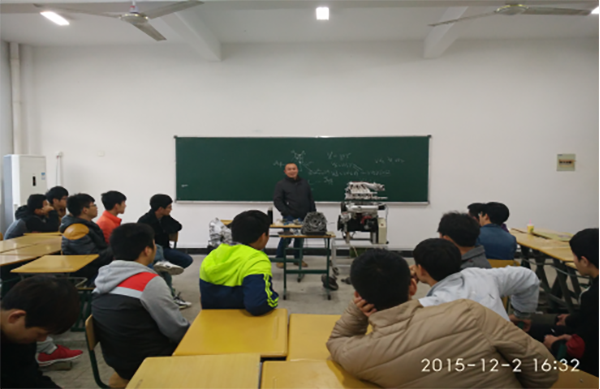 为了使2015级新同学更好的了解自己的专业方向,激发他们对专业学习的兴趣。2015年12月2日,在汽车协会全体成员参观了学校汽车系发动机实训基地,并且邀请了指导老师江雪峰老师给同学们授课。