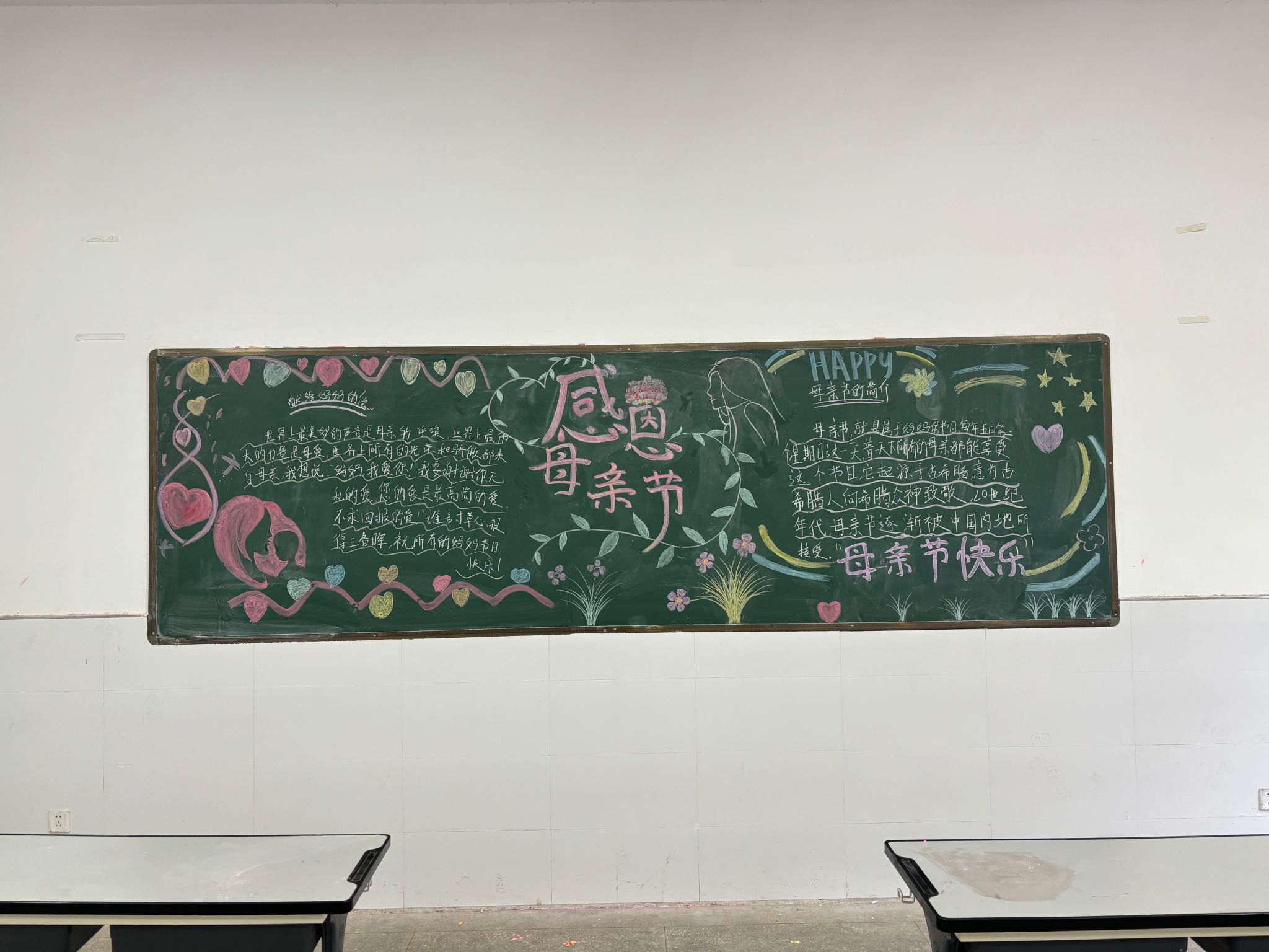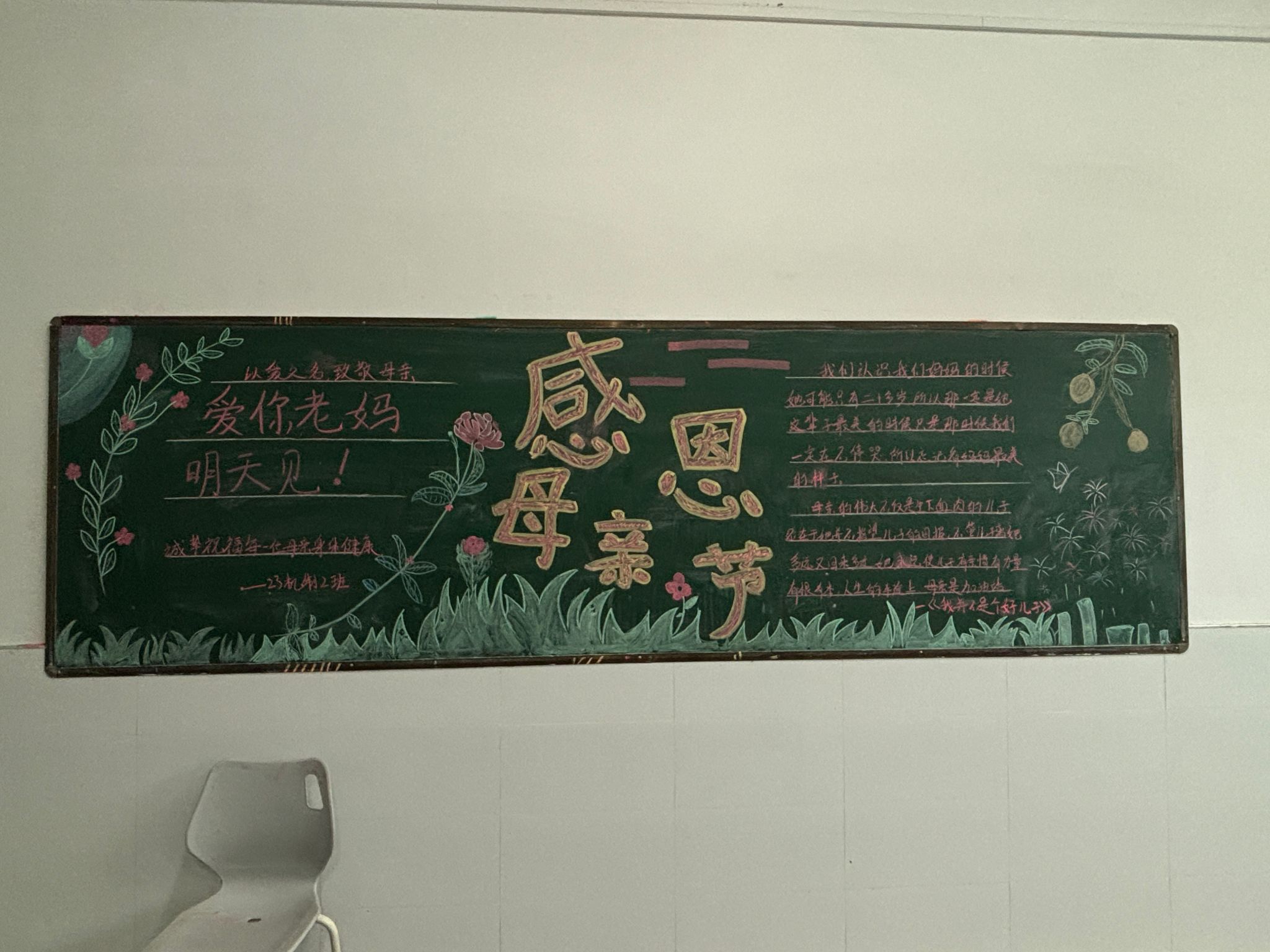 为弘扬中华民族传统美德,机械与汽车工程学院学生会组织同学以“浓情五月天,感恩母亲节”为主题的黑板报评比活动