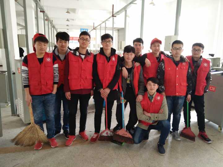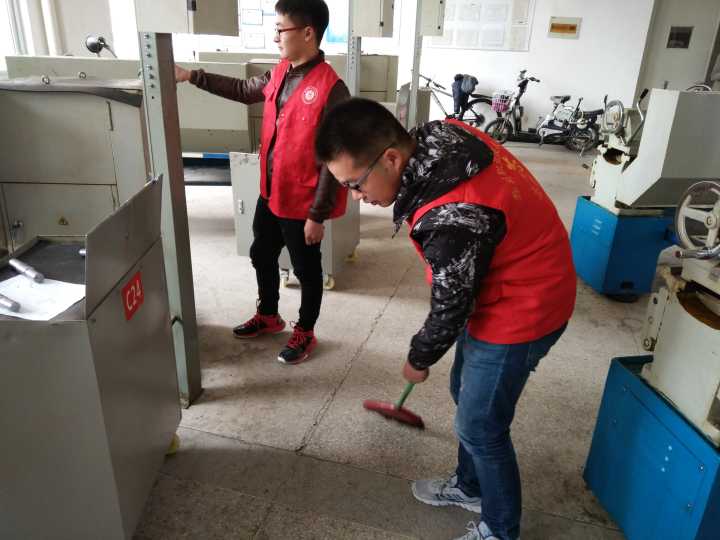 在第54个学雷锋日来临之际,为了更好的弘扬雷锋精神,引导青年学生以实际行动向雷锋同志学习。16级机制班团支部积极行动起来,于2017年3月5日下午开展了“情系雷锋月,爱洒三月天”清扫、整理实训楼车间志愿服务活动。