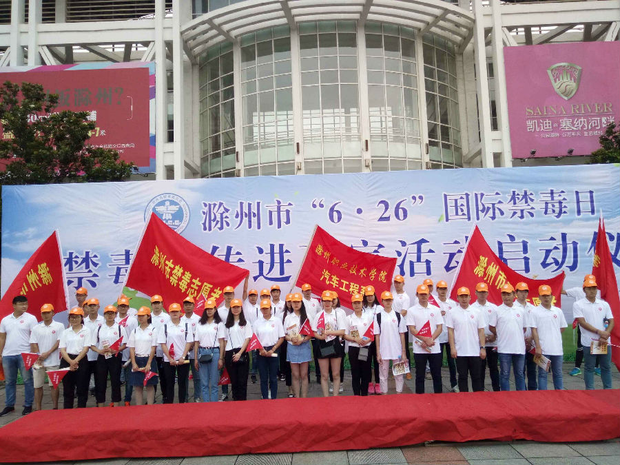 2016年6月25日上午,滁州市禁毒委在市火车北站法制广场隆重举行“6.26”国际禁毒日宣传活动暨禁毒宣传进万家活动启动仪式。汽车工程系53名同学作为禁毒志愿者参加了此次活动。