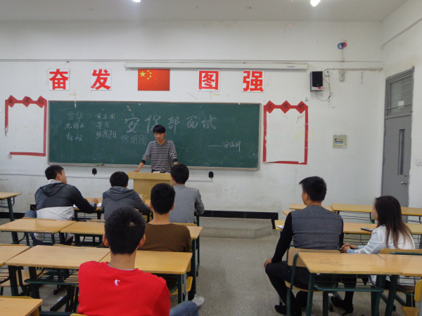 2013年10月21日中午,汽车工程系学生会招新面试工作在系内全面展开。本次有10个部门招新,总共招收80多名新成员。面试开始前,学生会主席李斯亮、副主席徐跃光召集各部门负责招新工作的学干确认各项事宜。