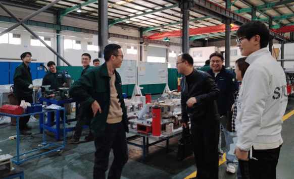 学院调研团队首先深入企业车间,看望正在参与岗位实习的学院应届毕业生和留企工作的校友,提醒在岗学生要注意安全,学习工匠精神,提升本领,在自身岗位上发光发热。