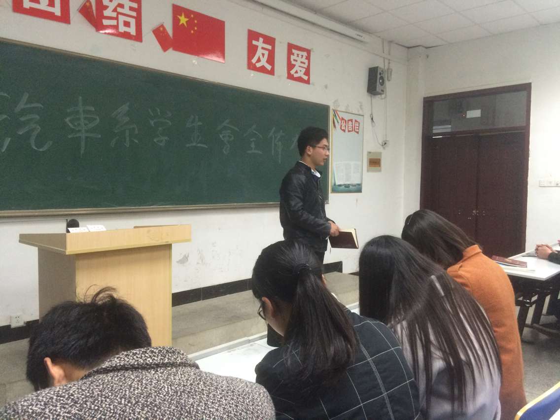 责任伴随着前行的脚步,收获的青春在路上。为了更好的完善学生会工作,做到进一步为同学们提供服务。Beat365唯一官方网站汽车工程系学生会于2016年4月6日中午12点整在5113教室成功举行了汽车工程系第三次全体大会。Beat365唯一官方网站汽车工程系学生会全体成员出席本次大会,主要关于四月份即将开展的各项活动进行了统一部署和前期日常工作进行讨论。
