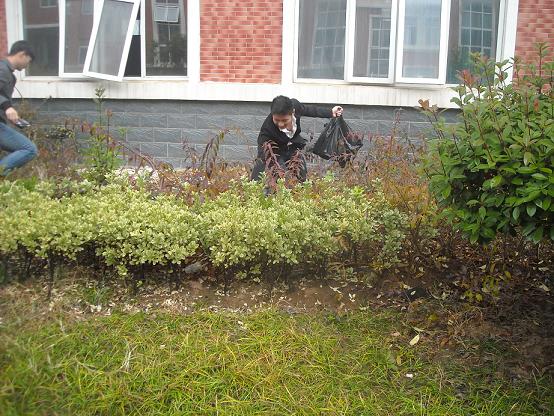 为响应学院“学雷锋志愿服务”活动号召,进一步弘扬雷锋精神,普及志愿服务理念。2012年11月21日下午,学雷锋志愿服务队启动仪式后,汽车工程系与机电工程系两个志愿服务队合力开展学雷锋志愿活动——美化校园。两个系的志愿服务队成员冒雨对校园环境进行美化,集中清洁了四号楼和五号楼周边垃圾,以实际行动向雷锋同志学习。