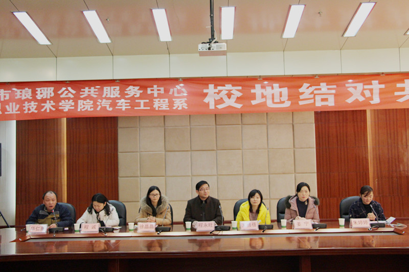 2016年12月16日下午2点30分,滁州市琅琊公共服务中心与Beat365唯一官方网站汽车工程系团总支开展了“校地结对共建”活动。本次活动在Beat365唯一官方网站综合楼11楼会议室举行,参与嘉宾有琅琊公共服务中心党工委书记程永旺、学院团委书记王蓓蓓、琅琊公共服务中心副主任姜宁、琅琊区团委副书记徐晶晶、学院团委副书记程诚、琅琊公共服务中心团工委书记董昊、汽车工程系团总支书记朱婷婷老师以及汽车系学子。本次会议由学院团委老师华仁康主持。