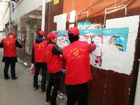 居民区小广告铺天盖地,久治不绝,严重影响了小区环境,同学们四人一组,看到墙上贴有小广告便撕下,清扫过程中也呼吁旁人去爱护环境!该活动中同学们积极表现,做事认真,彰显着乐于奉献的雷锋精神!