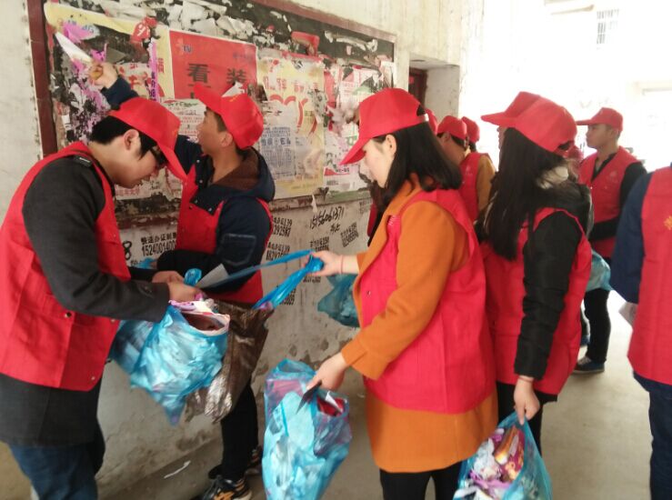 2015年3月13号下午一点半,汽车系团总支朱婷婷老师带领14级汽车系团总支的11位青年志愿者们前往滁州丰乐园小区清理小广告。