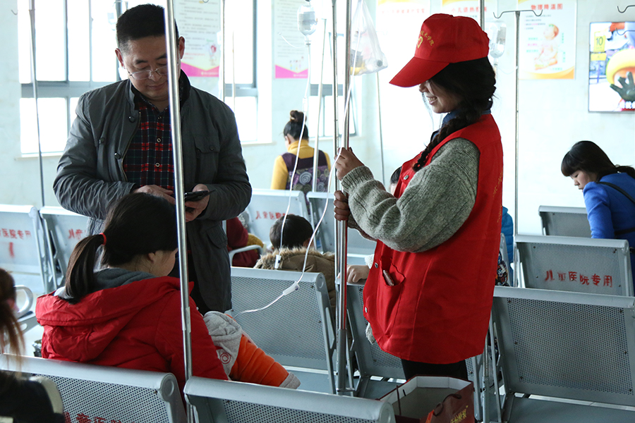 志愿者们积极为医院病人服务,为患者提供力所能及的帮助,为患者指引道路,方便取药就医,提高就医效率;叫号服务,维护现场秩序,为医生提供帮助,提高工作效率。帮助管理人员,搬送医用物资,分担工作压力。