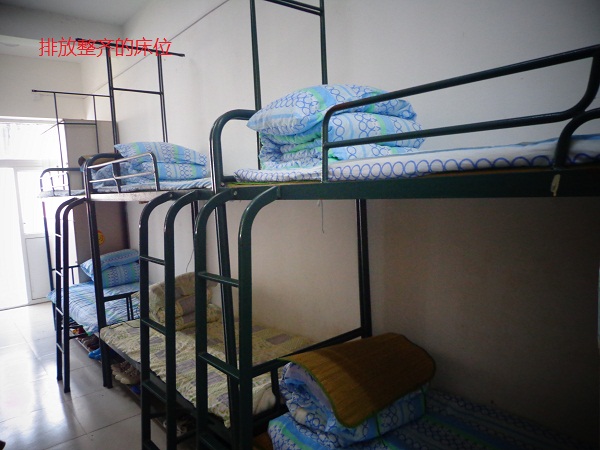 由汽车系团总支组织的军训内务评比活动在宿舍区展开。朱婷婷老师以及系部团干对汽车系新生宿舍进行了有序的检查评比。宿舍内新生们的洗漱用具摆放整齐,床单整齐放置,整个宿舍安排的井然有序,显得大方得体,部分宿舍用壁纸装扮,小盆景花儿绽放,散发出阵阵芬芳,给人一种有条不紊的清新之感。检查中,各位检察员针对评分细则进行了认真的评分,并在评比过程中提醒新生们不要使用大功率电器并告知其危险性,确保宿舍的绝对安全。