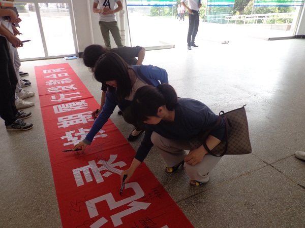 活动伊始,老师讲述了诚信和征信记录的重要性,同学们都仔细聆听。随后,全体同学有秩序地排起整齐的队伍,坚定地在条幅上签下自己的名字。活动结束,同学们与横幅合影留念。