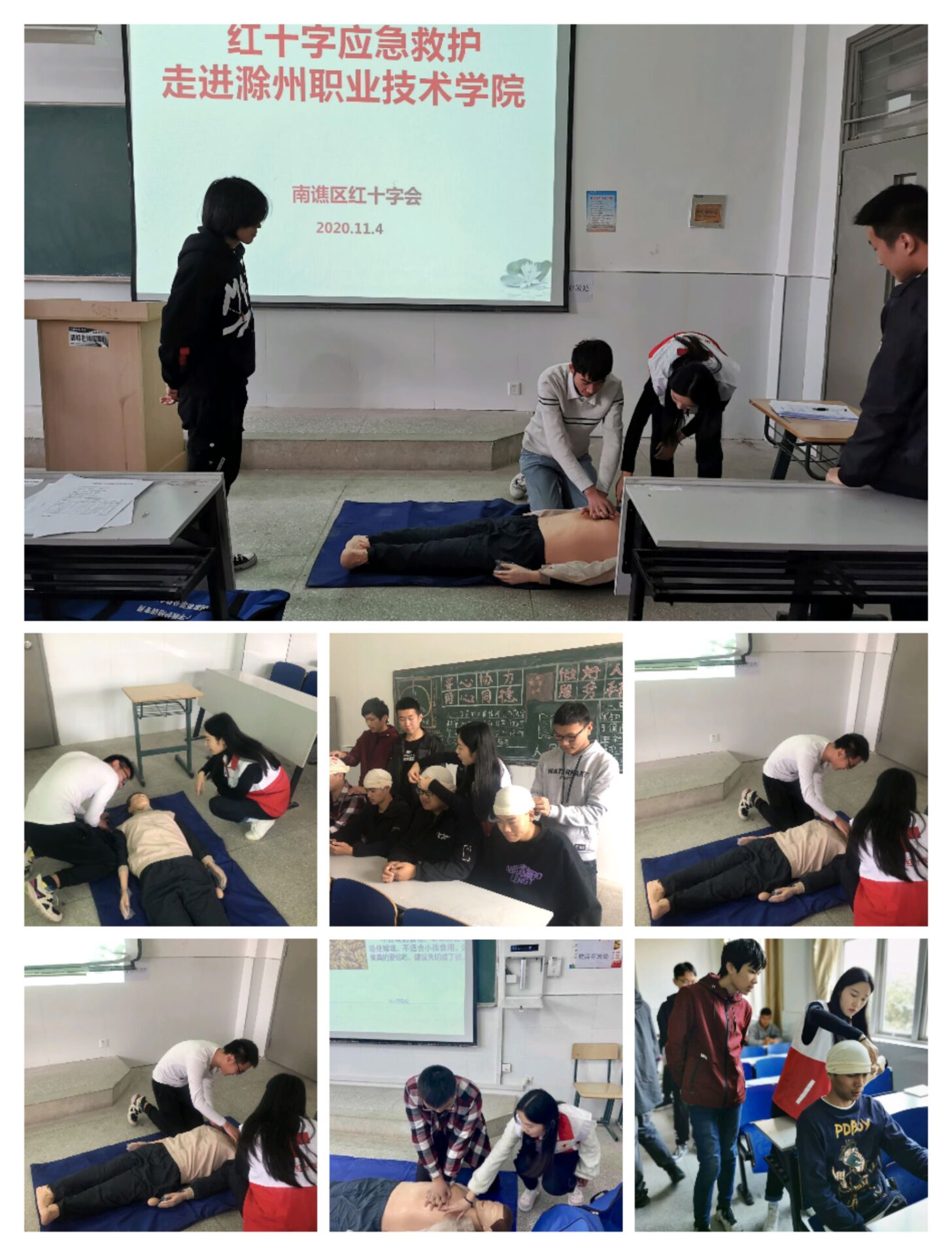 为让学生了解自救互救知识,掌握急救技能,成为一名合格的急救员。机械与汽车工程学院团总支联合南谯区红十字会与11月20日举行急救员培训活动,团总支50名学生与红十字会多位老师进行为期两天的培训。