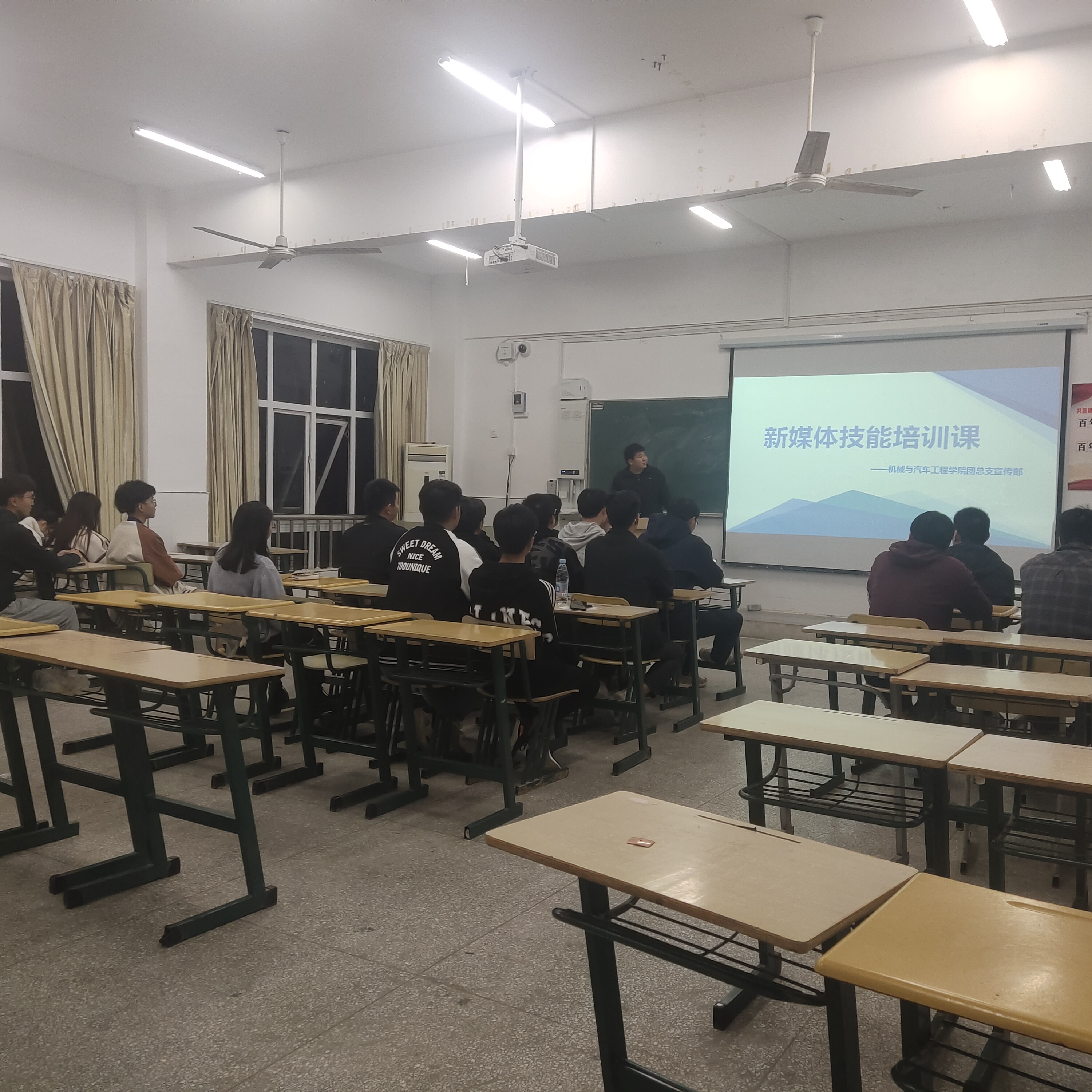 为了贯彻学院新媒体工作的具体要求,提升学生的文化涵养,以及学院新闻宣传的正常运行。机械与汽车工程学院团总支宣传部于2021年10月18日晚7时在5212教室开展了新媒体培训课。
