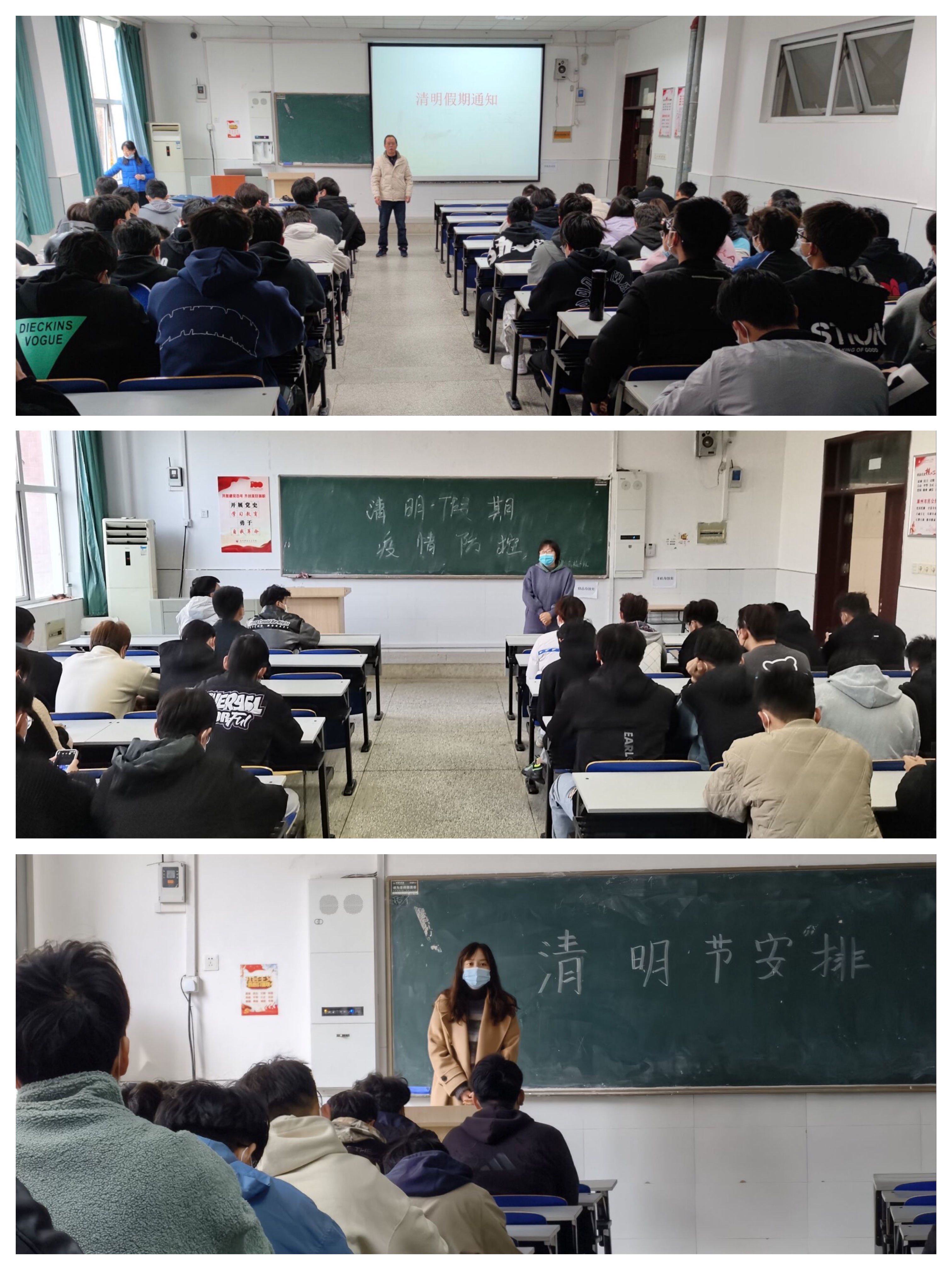 疫情就是命令,防控就是责任。国内疫情防控形势严峻复杂,为保障同学安全,做好学校清明期间疫情防控工作,2022年4月1号早上8点,机械与汽车工程学院各班召开了关于清明放假安排主题班会。